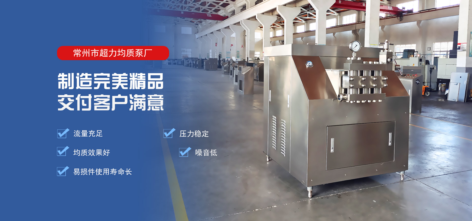 每道工序一絲不茍精益求精,追求卓越的品質(zhì)。均質(zhì)機(jī)經(jīng)幾十年的市場檢驗(yàn),以其流量充足、壓力穩(wěn)定,均質(zhì)效果好,易損件壽命長,噪音低等特點(diǎn),為我國的乳品、飲料、制藥,化工行業(yè)廣泛應(yīng)用。