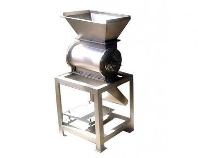 工作原理:飛刀繞自身軸線在固定不動(dòng)的底刀間隙內(nèi)旋轉(zhuǎn),從而使果蔬破碎,轉(zhuǎn)子上有四組飛刀,底刀為一組,視果蔬種類不同,出料斗有斗式和管式兩種型式。在進(jìn)料斗上部加上緩沖裝置,可得到粒度更細(xì)的物料。