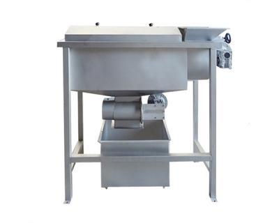 沙棘果除梗破碎機可以對沙棘果進行果梗分離、清除梗枝、破碎、輸送果漿等工藝過程。主要技術特點是先除梗后破碎, 移動式單螺桿泵輸送果漿。設有無級調速的進料螺旋,可實現定量進料。除梗裝置可根據沙棘果品種不同而調整轉速,對沙棘果品種的適應性強。快開式破碎裝置,操作方便。破碎輥為無毒高彈性橡膠制造, 對沙棘果核無損傷。破碎后的沙棘果由螺桿泵輸送至發酵罐。整機與沙棘果接觸部分及外露部分全部用優質304不銹鋼材料制造。