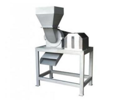 工作原理:飛刀繞自身軸線在固定不動的底刀間隙內旋轉,從而使果蔬破碎,轉子上有四組飛刀,底刀為一組,視果蔬種類不同,出料斗有斗式和管式兩種型式。在進料斗上部加上緩沖裝置,可得到粒度更細的物料。