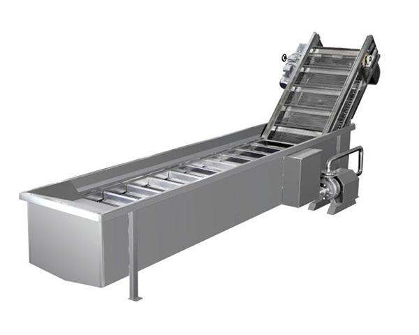 簡介—物料在網帶輸送經過水中緩慢地淋洗,出料端設有噴淋,特別適合桑葚、草莓、黑霉等柔軟易損壞的水果清洗。自帶提升,方便聯線。