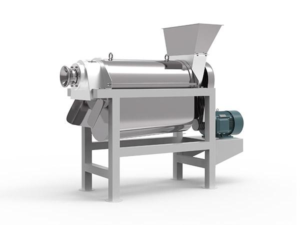 工作原理是破碎后的果肉、汁、皮通過進(jìn)料斗進(jìn)入雙螺旋榨汁機(jī),由于螺旋沿著料渣出口方向底徑逐漸加大而螺距逐漸減少,當(dāng)物料被螺旋推進(jìn)時(shí),因螺旋腔體積縮小,形成對(duì)物料的壓榨。螺旋主軸的轉(zhuǎn)動(dòng)方向從進(jìn)料斗向渣槽方向看去,為逆時(shí)針方向。原料加入進(jìn)料斗中,在螺旋的推進(jìn)下受壓,其壓榨的汁液通過過濾網(wǎng)流入底部的盛汁器,而廢料則通過螺旋及調(diào)壓的錐形部分之間形成的環(huán)狀空隙排出,調(diào)壓頭沿軸向的移動(dòng)并直接受液壓系統(tǒng)控制。